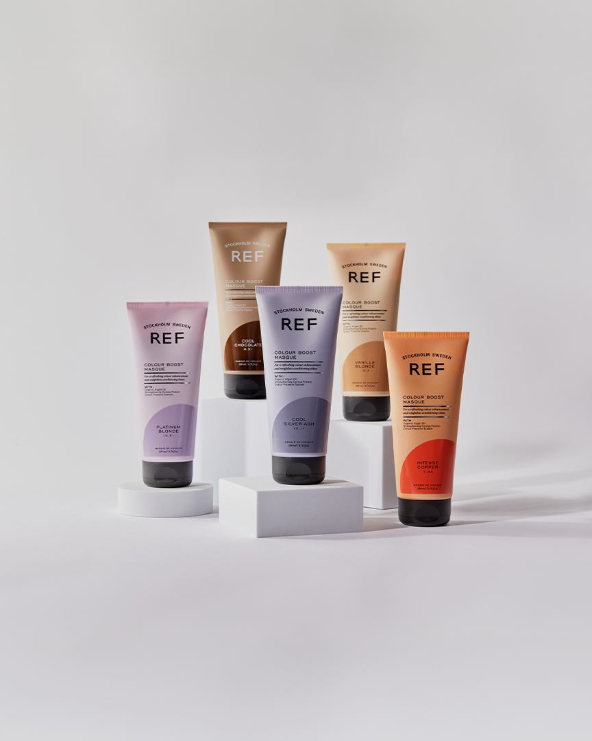 - Apply the Masque: Take an appropriate amount of the REF Colour Boost Masque and apply it evenly throughout your hair, focusing on areas where you want to boost color and shine. Use a comb to distribute the product if needed.